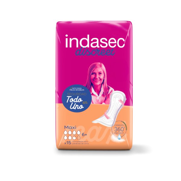 Indasec Discreet® Maxi es la solución ideal para controlar pérdidas leves habituales. Se adapta perfectamente a la ropa interior y ofrece la seguridad necesaria para llevar una vida sin limitaciones.