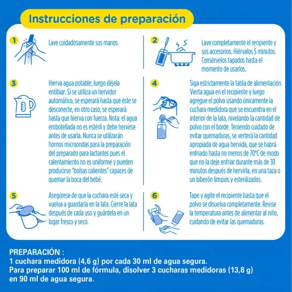 El envase de lata está diseñado especialmente para hacer la preparación de la fórmula infantil más fácil y segura. Una vez abierta, podrás conservar la misma garantizando su sabor y consistencia.